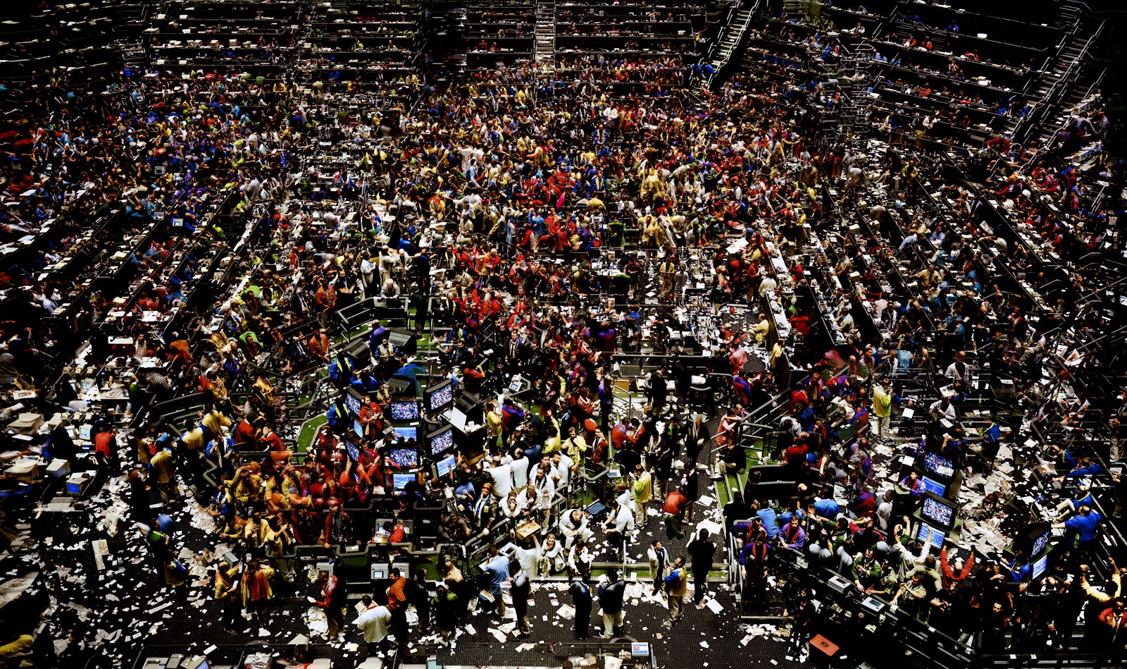 German photographer Andreas Gursky is known for his large-scale color images of landscapes, architecture, and human activity. Widely regarded as one of the most influential contemporary photographers, his works explore themes of globalization, capitalism, consumerism, and the sublime, depicting scenes such as factories, airports, highways, landscapes, and buildings, among many other subjects. Framing his photographs from high points of view, Gursky reveals visual patterns in crowds of people and industrial infrastructure, all in sharply focused detail that favors neither the foreground nor the background. According to Gursky, “You never notice arbitrary details in my work. On a formal level, countless interrelated micro and macrostructures are woven together, determined by an overall organizational principle.”