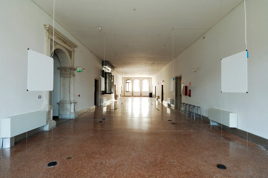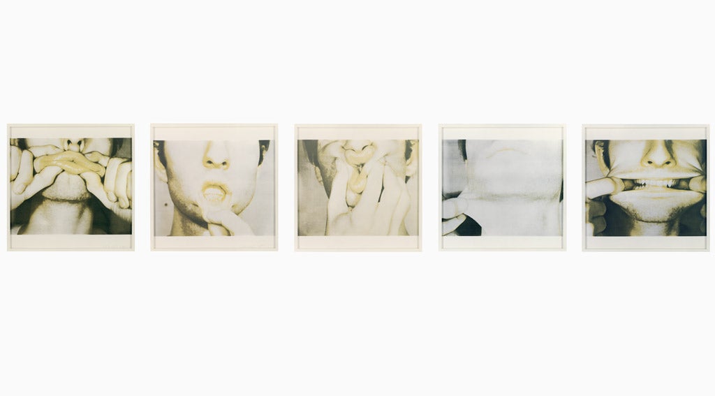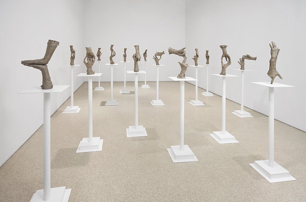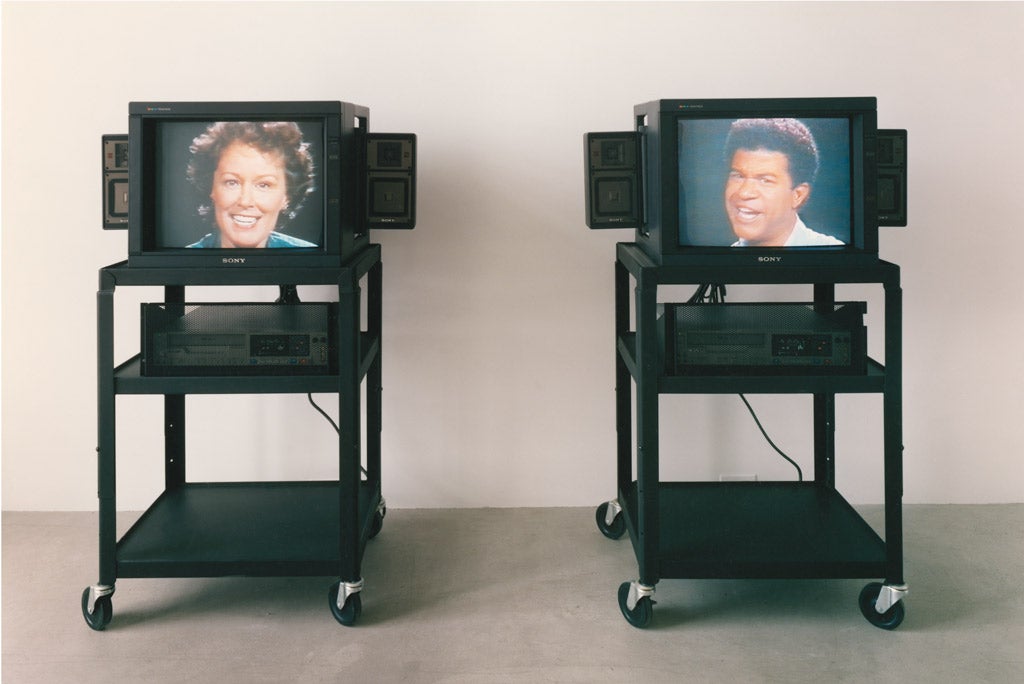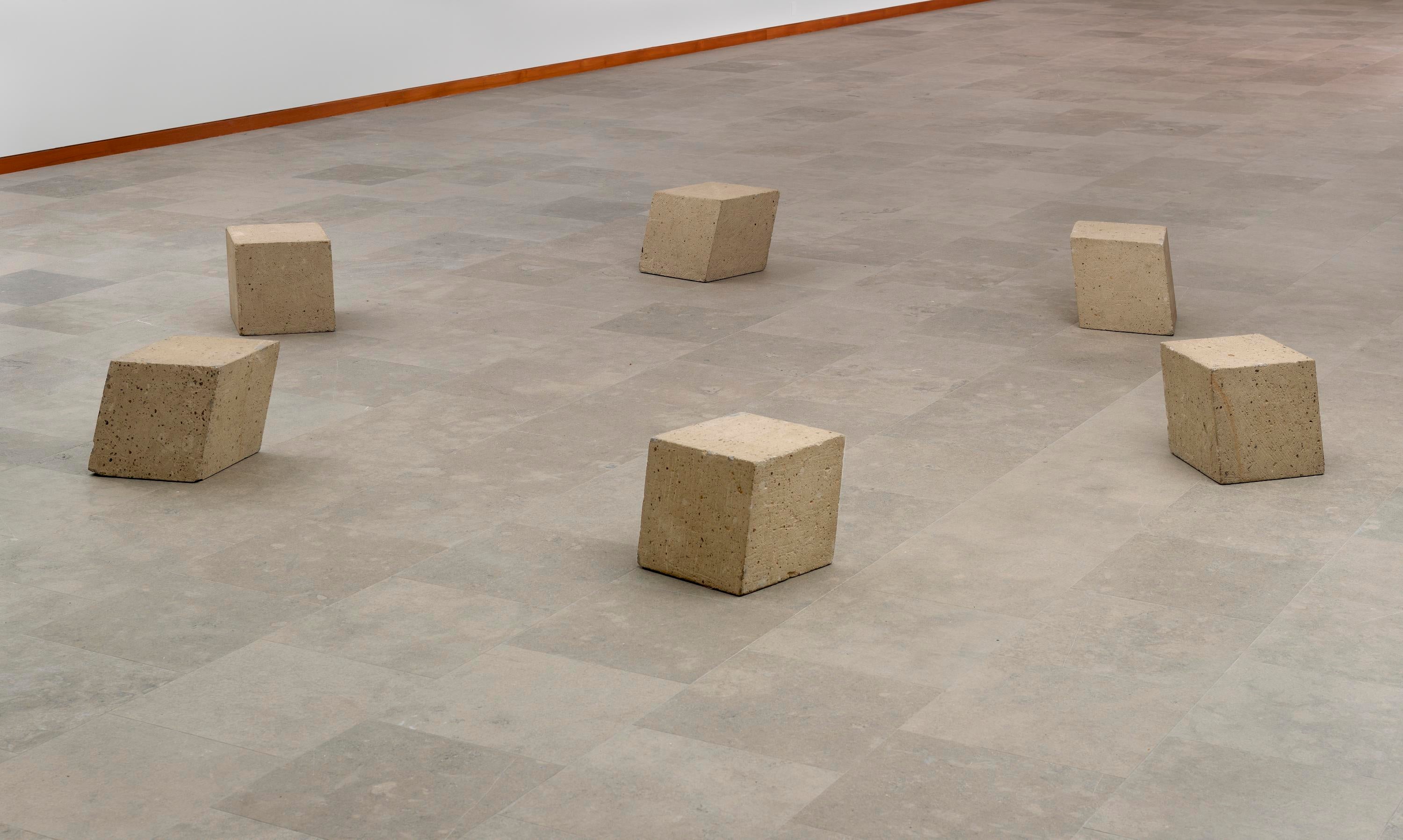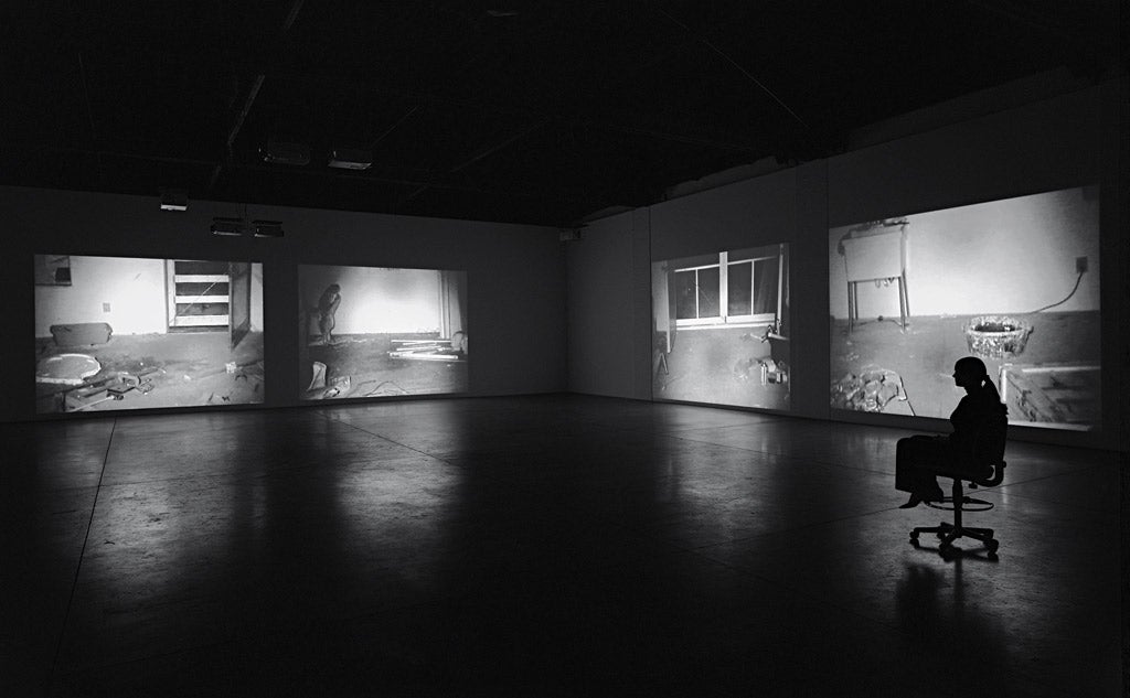 Works by American artist Bruce Nauman span a diverse range of media, from photography and drawing to video and neon. American Violence, 1981–1982, in Glenstone’s collection, consists of eight words or phrases rendered in neon in the shape of a swastika. All components of the light fixtures are intentionally visible to the viewer: the power station with its Plexiglas cover, the transformer, and four short power cables. The voltage applied to the neon glass tubes causes different mixtures of gas to emit light in various colors. As American Violence flashes on and off we see phrases both ominous and absurd, as though illuminated on the Las Vegas strip. The works remains unsettlingly relevant more than 40 years after it was made.
