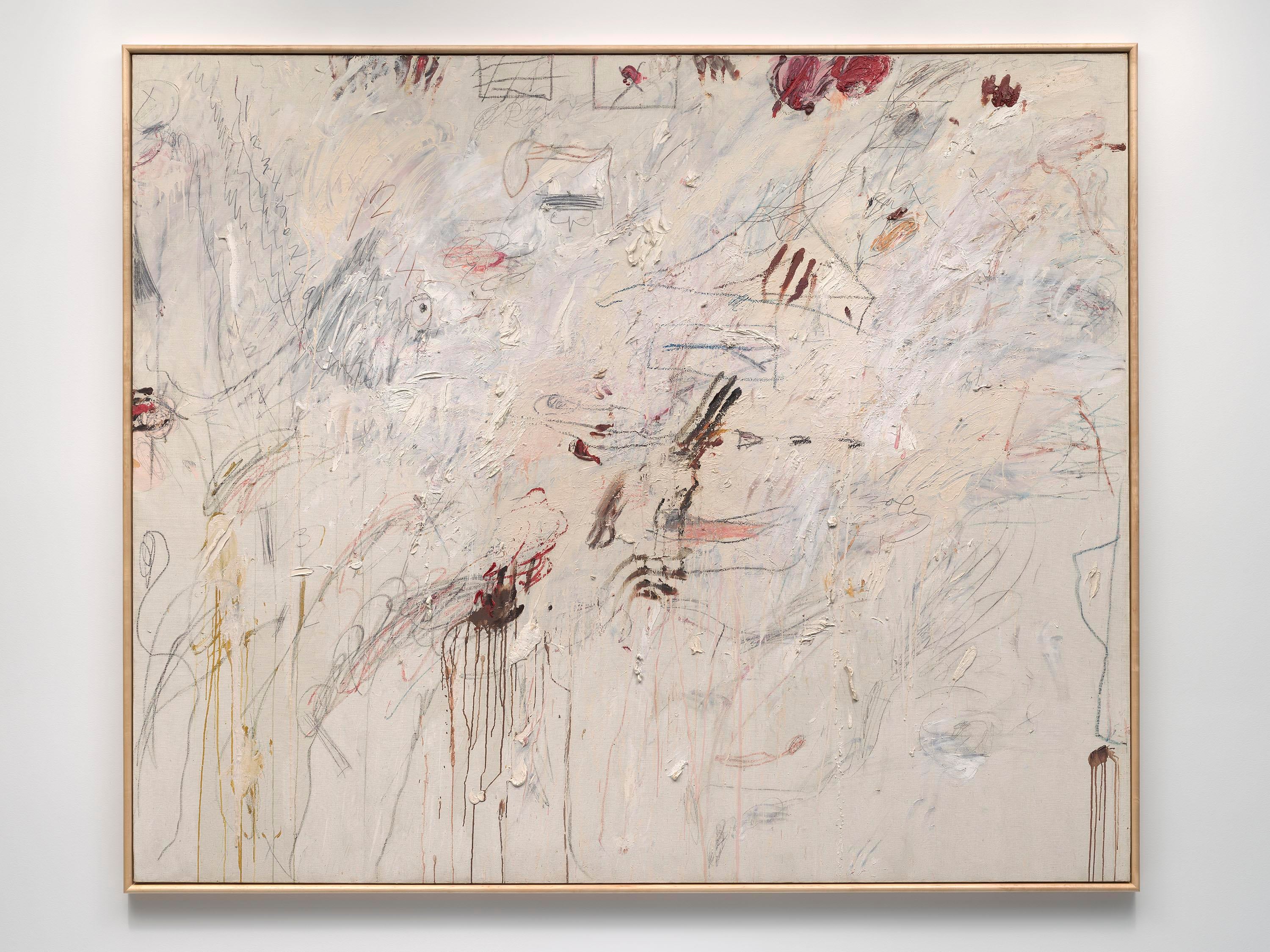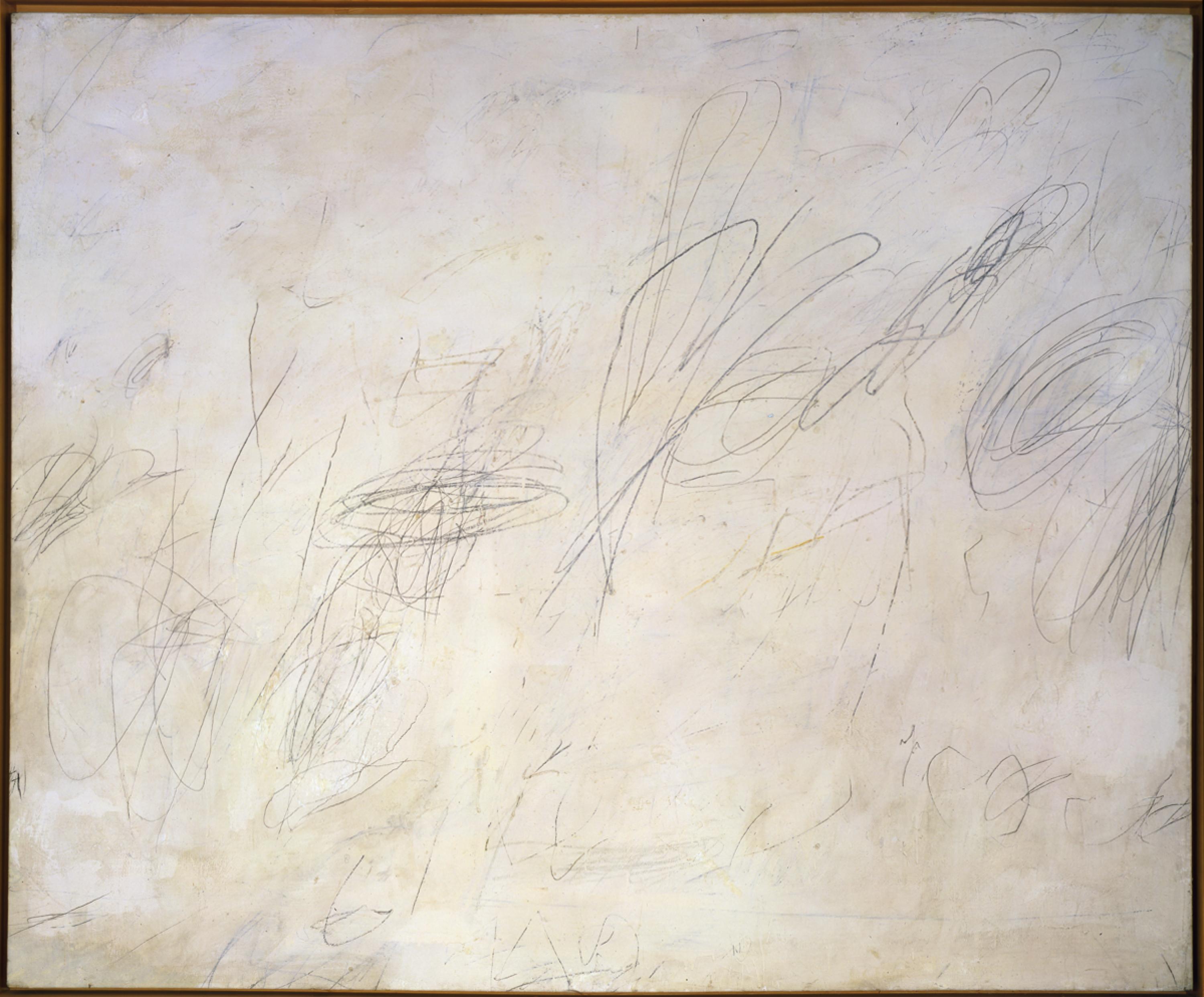 American artist Cy Twombly drew inspiration from numerous sources: poetry, mythology, his travels, and a long-standing interest in symbols, which began during his time as a cryptographer in the United States military during the 1950s. Although best known for making large-scale gestural paintings incorporating scribbles and scratched lines, Room 11 of the Pavilions features a suite of five examples from Twombly’s sculpture practice. Designed in collaboration with the artist, the works on view consist of disparate materials one might find in an artist’s studio, including twine, palm leaves, ladles, and nails. Some of the materials come from Twombly’s hometown of Lexington, Virginia, while others were gathered in Gaeta, the Italian coastal city where he lived and worked for decades. In a decisive action, Twombly coated his sculptures in white paint, unifying the assembled materials into a coherent whole. Recalling traditions of Greco-Roman sculpture, Twombly noted, “White paint is my marble.”