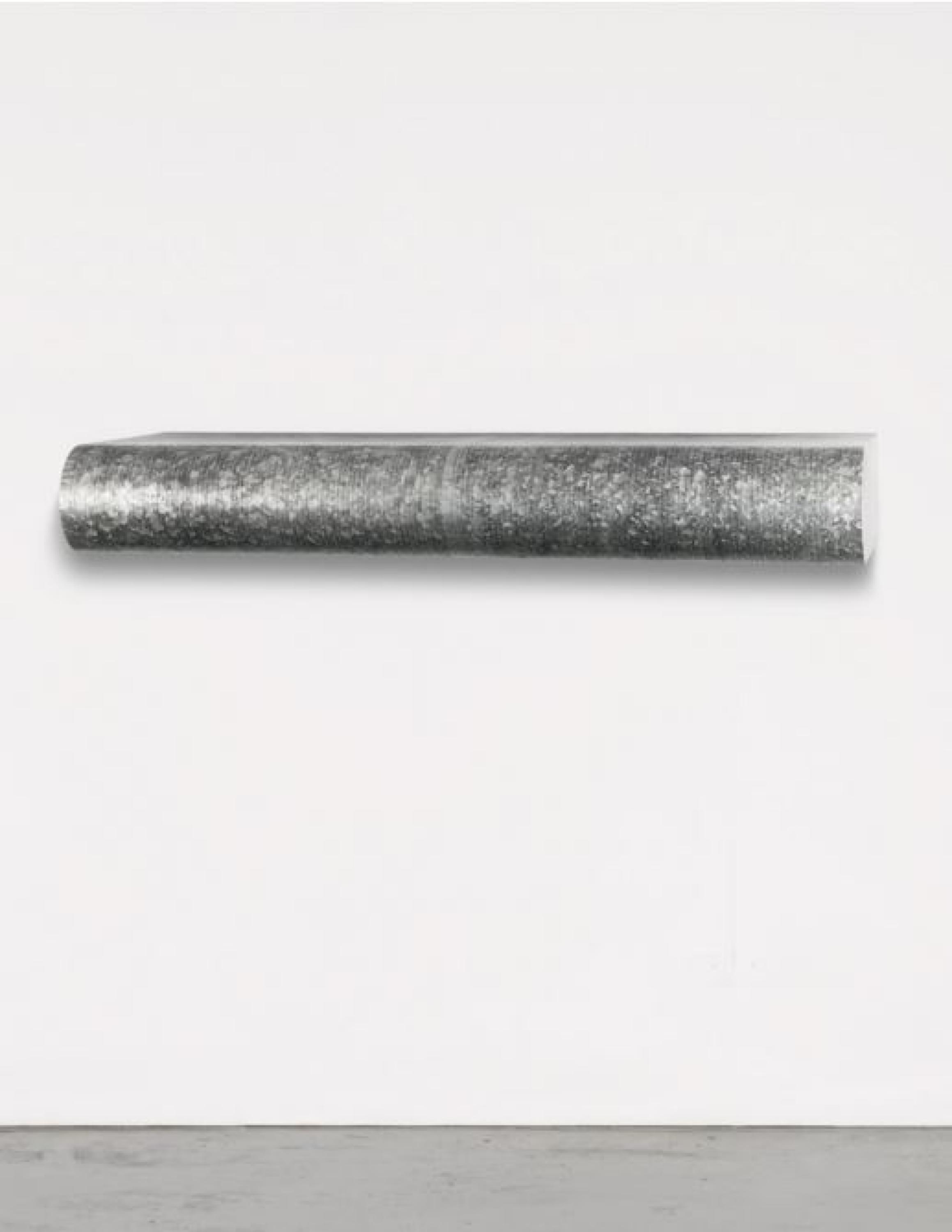 American sculptor Donald Judd is one of the most influential figures in twentieth century art. Though reluctant with the categorization, Judd is often associated with Minimalism. In his groundbreaking 1965 essay “Specific Objects,” Judd writes that “actual space is intrinsically more powerful and specific than paint on a flat surface.” He developed works intended to exist beyond the strict designations of painting, sculpture, and architecture. Untitled (DSS 41), 1963, in Glenstone’s collection, is an important early piece from a time when Judd was experimenting with innovations for which he would become known, such as creating art as a concept and outsourcing creative labor to fabricators who used industrial materials to make the finished artworks. Seemingly machine-made with sharp edges, the art object is painted but does not hang from a wall; has mass but is not displayed on a pedestal. It sits on the floor almost as a provocation, asking: can this be art?