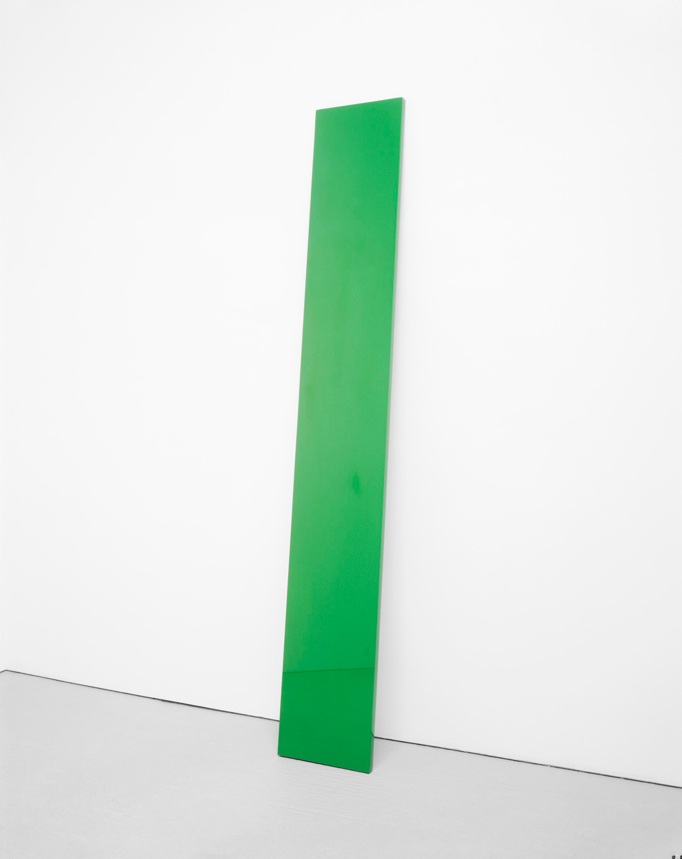 John McCracken was an American artist known for his Minimalist works that uniquely combined sculpture with painting. Exploring simplicity and reduction in his practice, he experimented with three-dimensional surfaces made of industrial materials such as plywood, resin, and lacquer. He began his signature Plank series of works in the 1960s, comprised of narrow, monochromatic, rectangular boards that lean against the wall. In Glenstone’s collection is Green Plank, 1968, constructed of polyester resin, fiberglass, and plywood. Despite being hand-crafted by the artist, the work’s solid green hue is perfectly uniform, appearing untouched by any human hand.