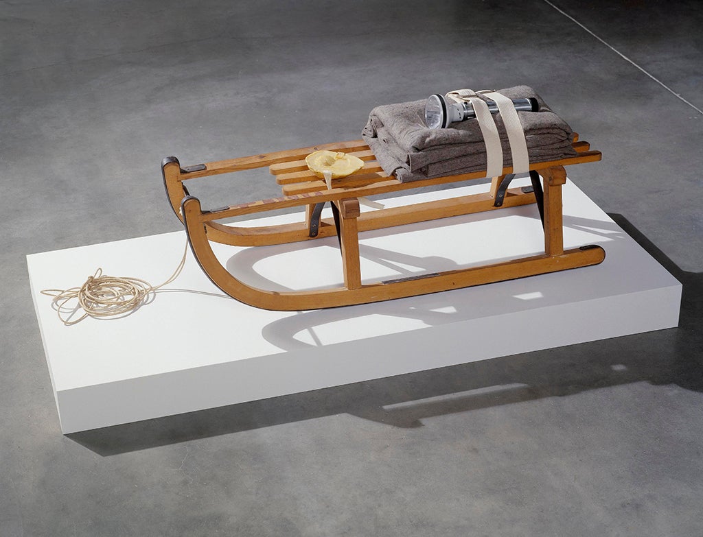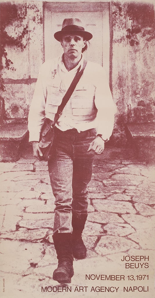 As a self-described “social sculptor,” Joseph Beuys’s oeuvre primarily consisted of performance works, documentary photography, and items he coined multiples, a range of modestly sized and affordable objects relating to his production. He embedded materials with deep metaphorical meanings, often related to his life experience. In one of the most impactful stories in his autobiography, Beuys maintained that he was rescued from a plane crash in the Mongolian mountains after World War II, saved by a group of Tatar people who healed him by wrapping him in fat and felt. This self-mythologizing story contributed strongly to Beuys’s quasi-shamanic persona in the art world and his lasting influence on the history of art.