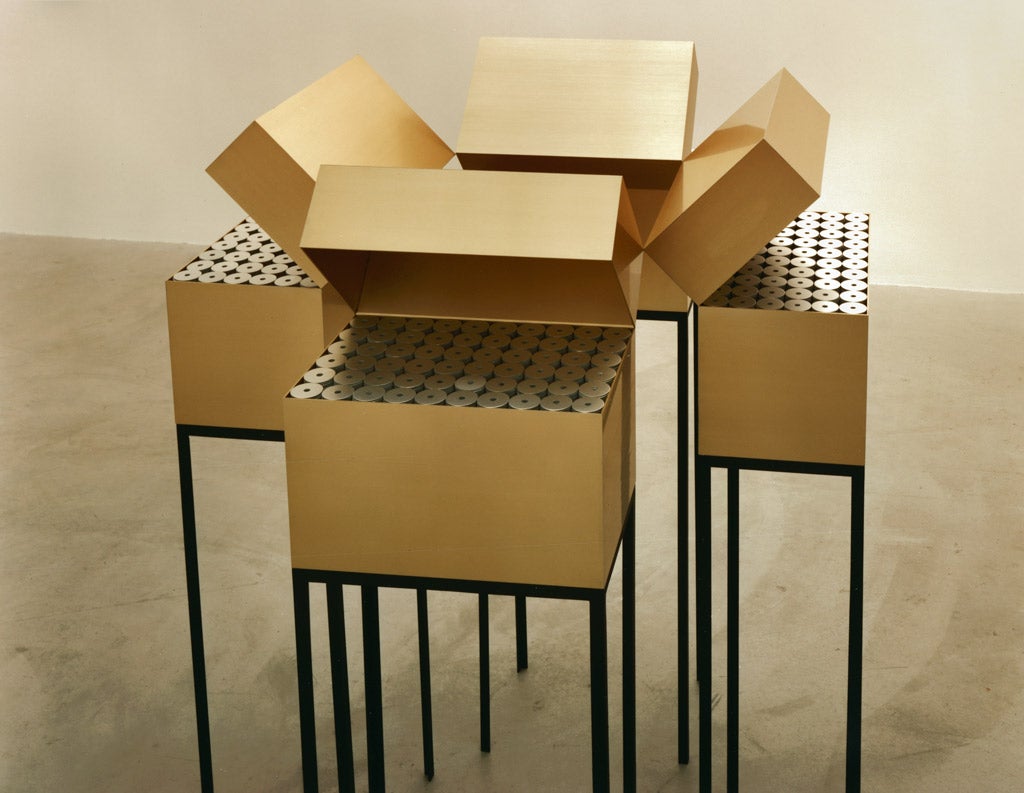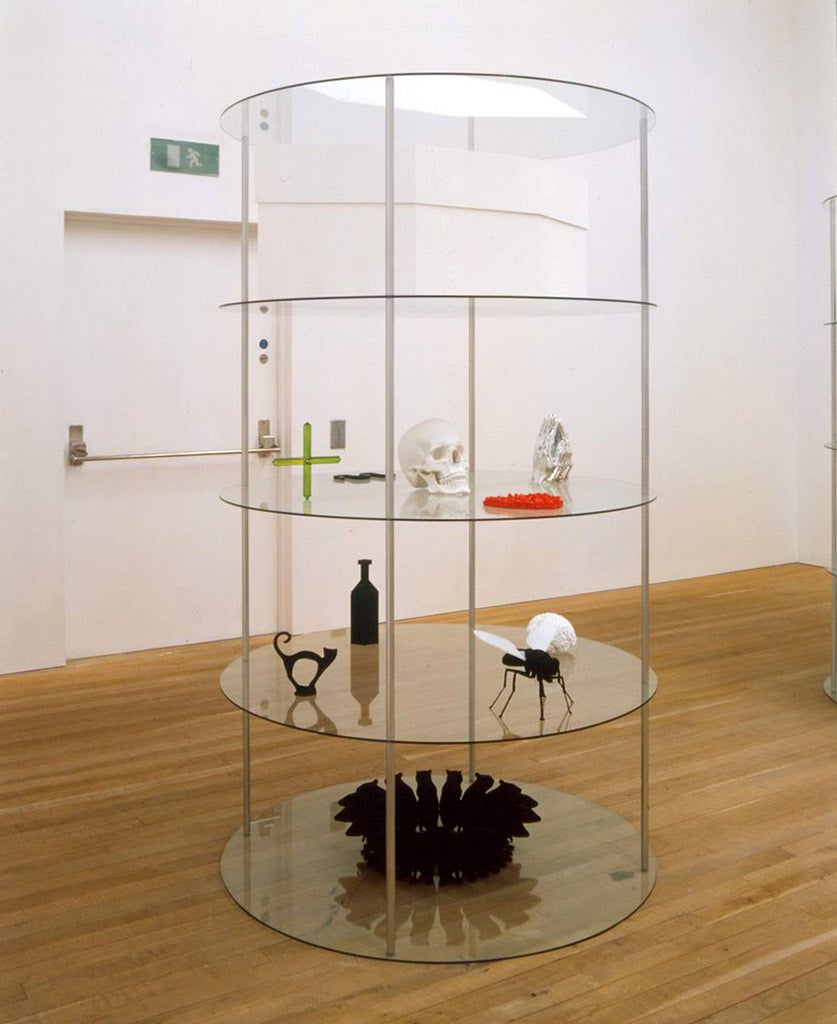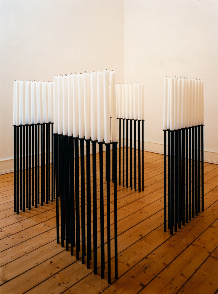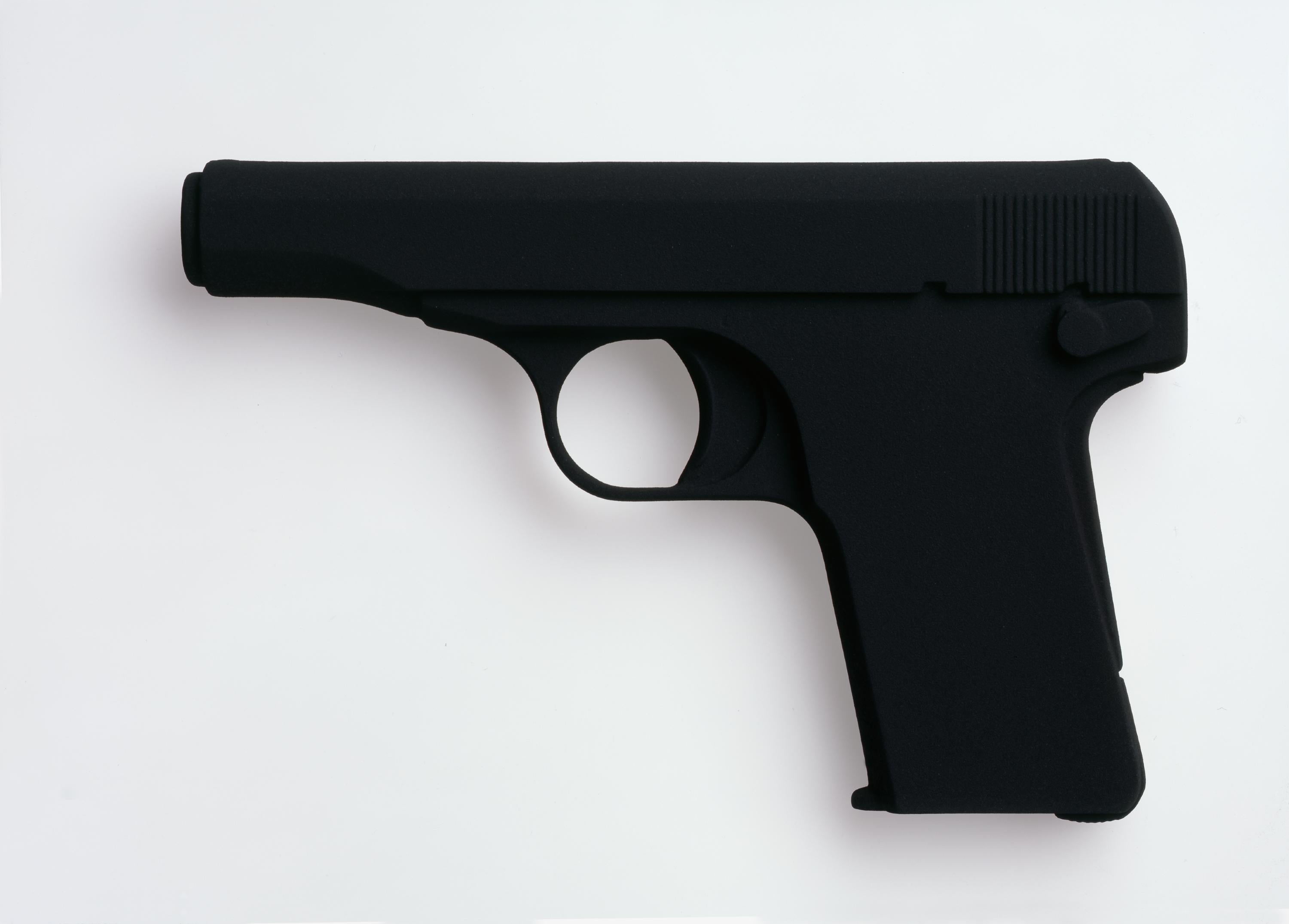 Katharina Fritsch’s extensive sculptural practice transforms familiar subjects through striking shifts of scale, color, and symbolic detail. Fritsch confronts social consciousness from a visual, often iconographic perspective. Her installation-based works reference the ways in which fantasies, fables, and fairy tales impact our cultural understanding. The artist’s sculptures are often described as “uncanny,” an effect due in part to the hyper-saturated finish the artist achieves by repeated layering of monochromatic paint, a process by which the surfaces of sculptures become completely unreflective. These figures subvert the traditional role of statues—hers are not celebratory and do not recall a moment of heroism or historical significance. Rather, they emphasize the inimitable and enigmatic, presenting viewers with symbols and associations to be contemplated rather than understood.