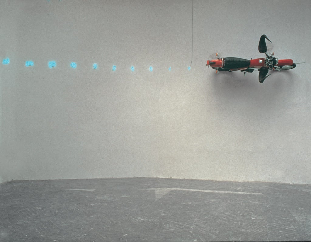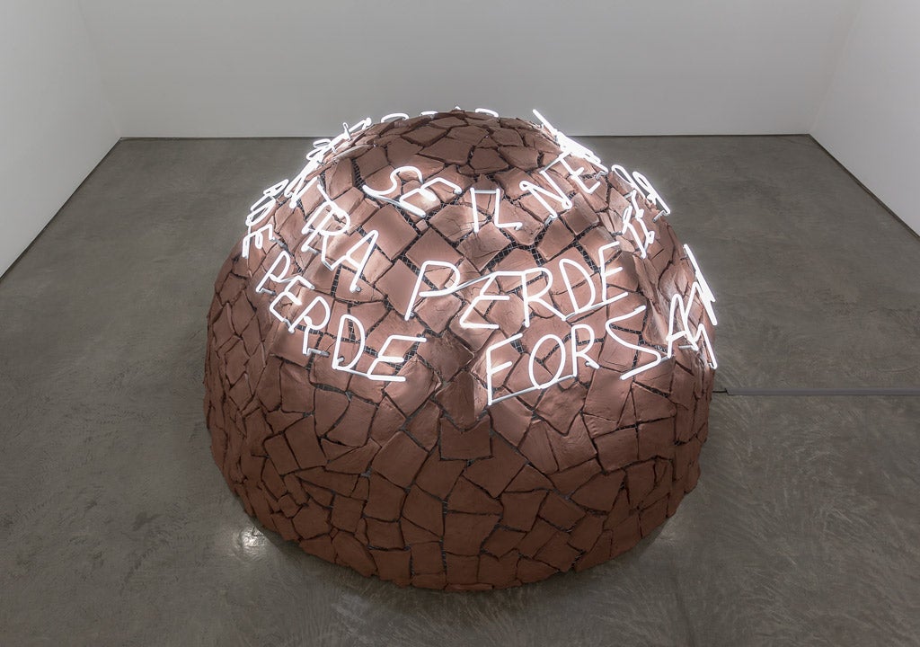 Mario Merz was a foundational figure within the Italian movement Arte Povera. Merz infused humble, everyday materials with a sensitivity to the natural and scientific worlds and the relationship between order and disorder. Senza titolo (Una somma reale è una somma di gente) (Untitled [A Real Sum Is a Sum of People]), 1972, manifests these concerns in ten sequential black and white photographs taken in a restaurant in the Italian city of Turin. Each image depicts a progressively larger group of the artist’s circle as they gather—their number growing more or less in accordance with the numeral affixed over the image. For Merz, the table symbolizes an equitable, democratic space to foster community and social interaction; the proliferation of gatherers is an emblem of life itself.