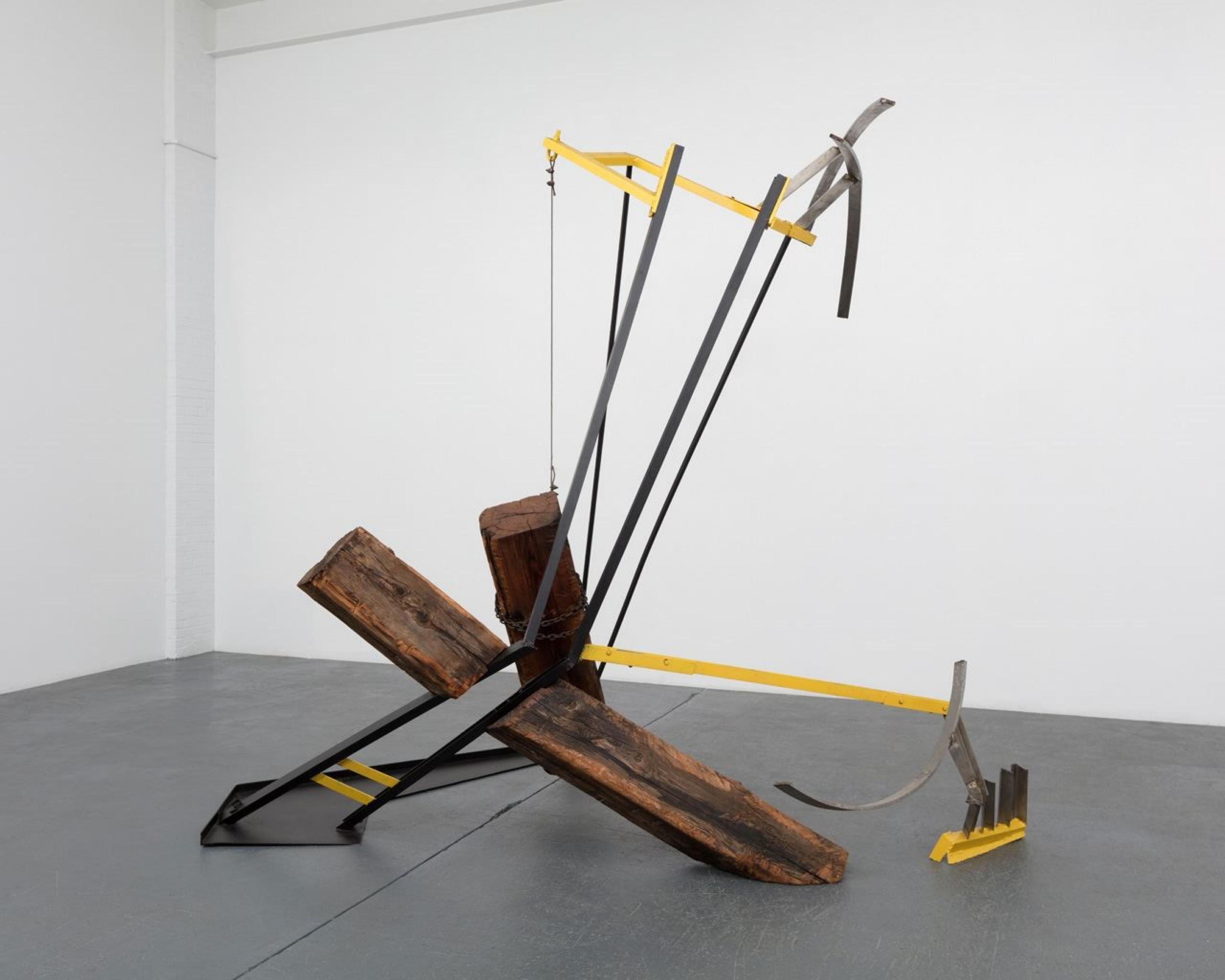Born in Shanghai to Venetian parents, Mark di Suvero immigrated to the United States at the age of eight. While working part time in construction in New York City during the 1950s, di Suvero gathered scraps of wood and metal salvaged from demolition sites, incorporating these materials into sculptures. He has since become well known for dynamic, often large-scale sculptures made of sharply angled beams and curving metal forms. Frequently integrating moving components, di Suvero invites viewers to interact with his works spatially and physically by pushing suspended elements and climbing beams.