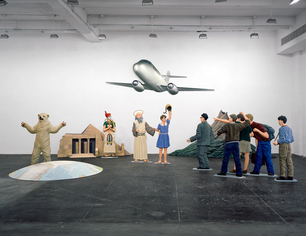 Childhood memory is the generative locus for all of artist Martin Honert’s work, which explores the nature of memory itself and how ephemeral impressions are sustained over time. Group of Teachers, 2012, in Glenstone’s collection, is a sculptural composition based on a photograph from the artist’s early boarding school days in postwar West Germany. The work incorporates particles of sand and glass into layers of translucent polyurethane. Honert applied a muted palette to paint shadows from the original photograph onto the surface of the sculpture. The resulting image is neither fully recognizable nor completely distant, no more real or illusory than the memory Honert’s photograph purports to capture. Instead, the work points to the hovering, haunting way that memories burrow and lodge within us, potent yet elusive, impossible to fix in space or time.