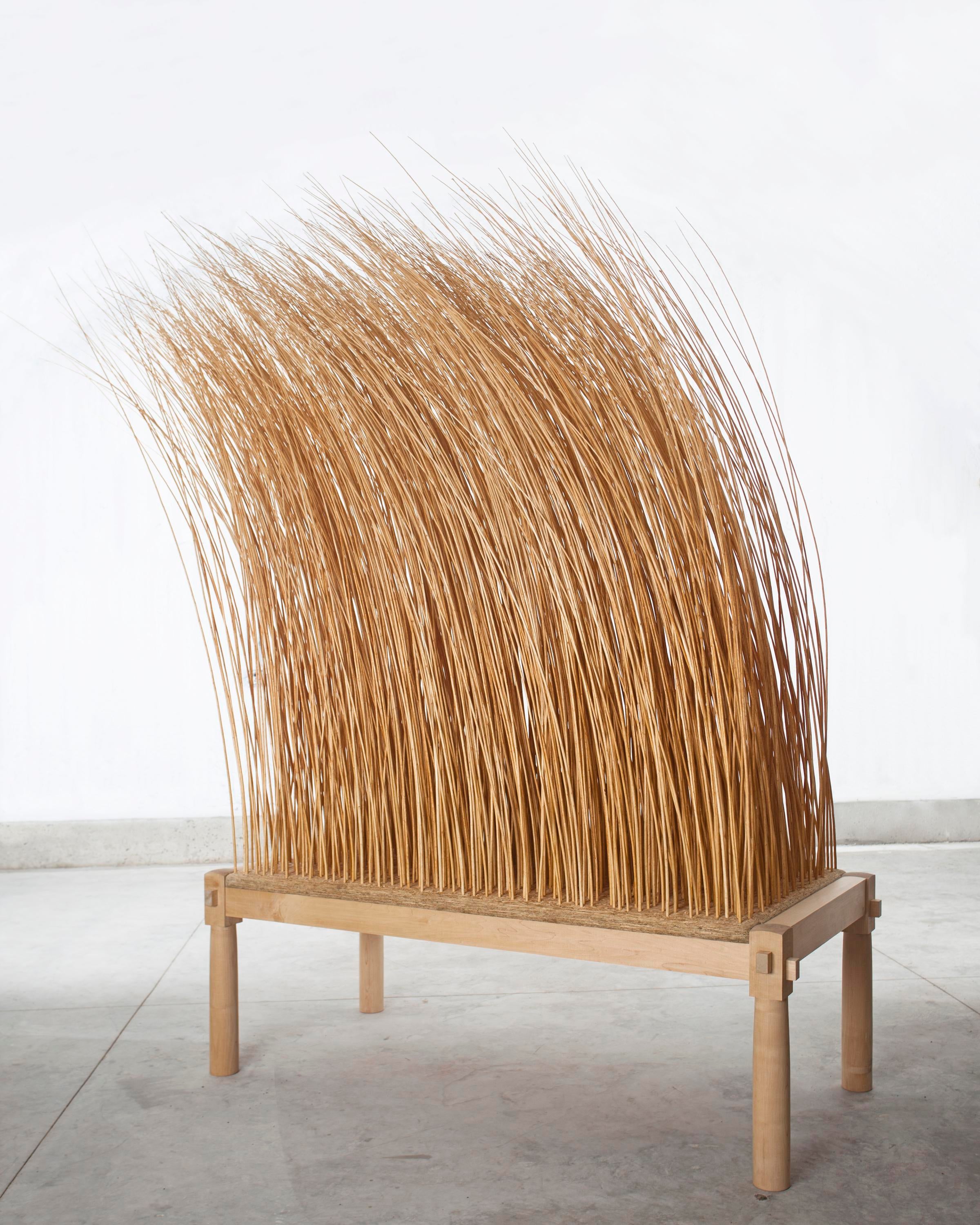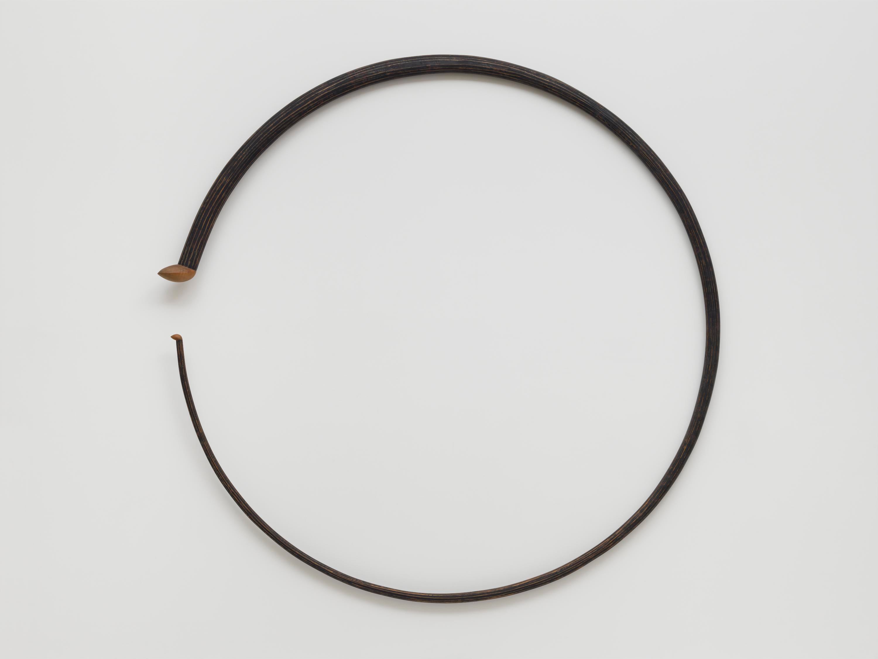 American artist Martin Puryear was born in Washington, DC, and works primarily with natural materials such as wood, stone, and metal. While serving in the Peace Corps, Puryear learned woodworking techniques from artisans in Sierra Leone. Later, he trained in printmaking at the Royal Swedish Academy of Arts in Stockholm, and in sculpture at Yale University. Puryear is best known for making handmade sculptures carved in wood, which range from organic forms inspired by nature to abstracted objects. Big Phrygian, 2010–2014, and The Load, 2012, both in Glenstone’s collection, are examples of the latter. The Load, made from several different types of wood—pine, red cedar, ash, and maple—as well as steel and glass, marries a hollow found carriage with a sculpture of a giant eye. Puryear collaborated with furniture fabricator Michael Hurwitz to create the centerpiece bench in Room 7 of the Pavilions, made of hickory with a maple veneer.