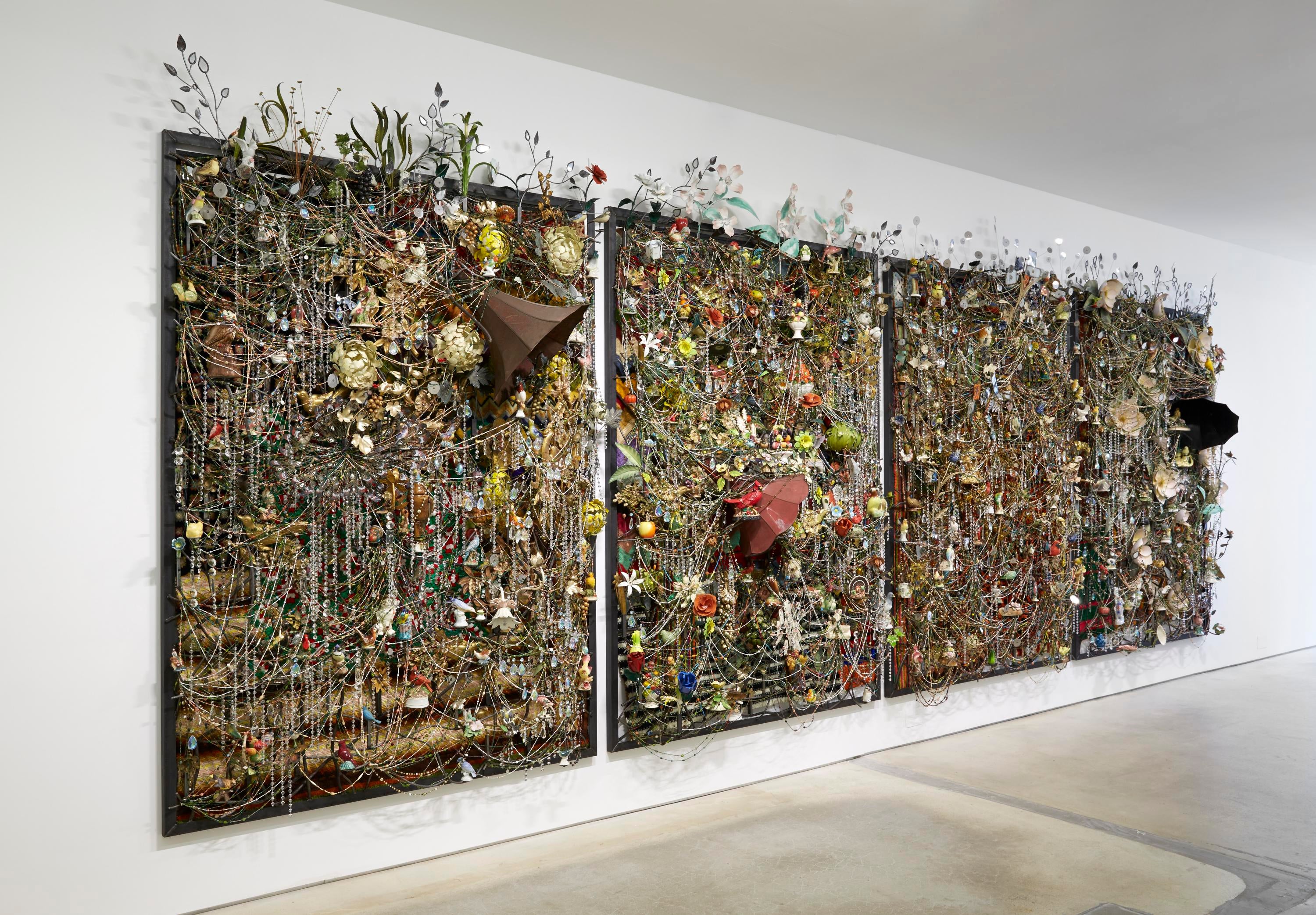 Nick Cave is an American sculptor who works across a range of media, combining elements of fashion, sculpture, performance, and immersion to challenge conceptions of race, violence, and identity. Utilizing materials as varied as bronze, wood, and fiber, he bridges craft traditions with fine art. Cave is best known for his revolutionary Soundsuits, objects of presence and power made from an amalgam of craft materials, some of which can be activated by dancers as part of an elaborate performance.