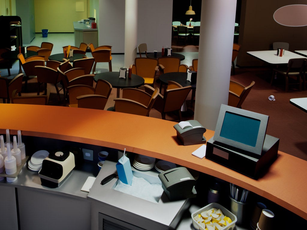 Thomas Demand first took up photography in 1989, capturing models of recognizable spaces made of paper. For the artist, the significance of photography soon surpassed that of the models. The paper constructions—many of which he built himself—became an elaborate means to an end. After Demand uses a large-format camera and stylized studio lighting to document these constructions, he destroys them. Upon close inspection, the resulting images convey a disjointedness, in which everyday subject matter is stripped of its distinguishing details. Demand is interested in the circulation of images and the way they permeate societal consciousness.