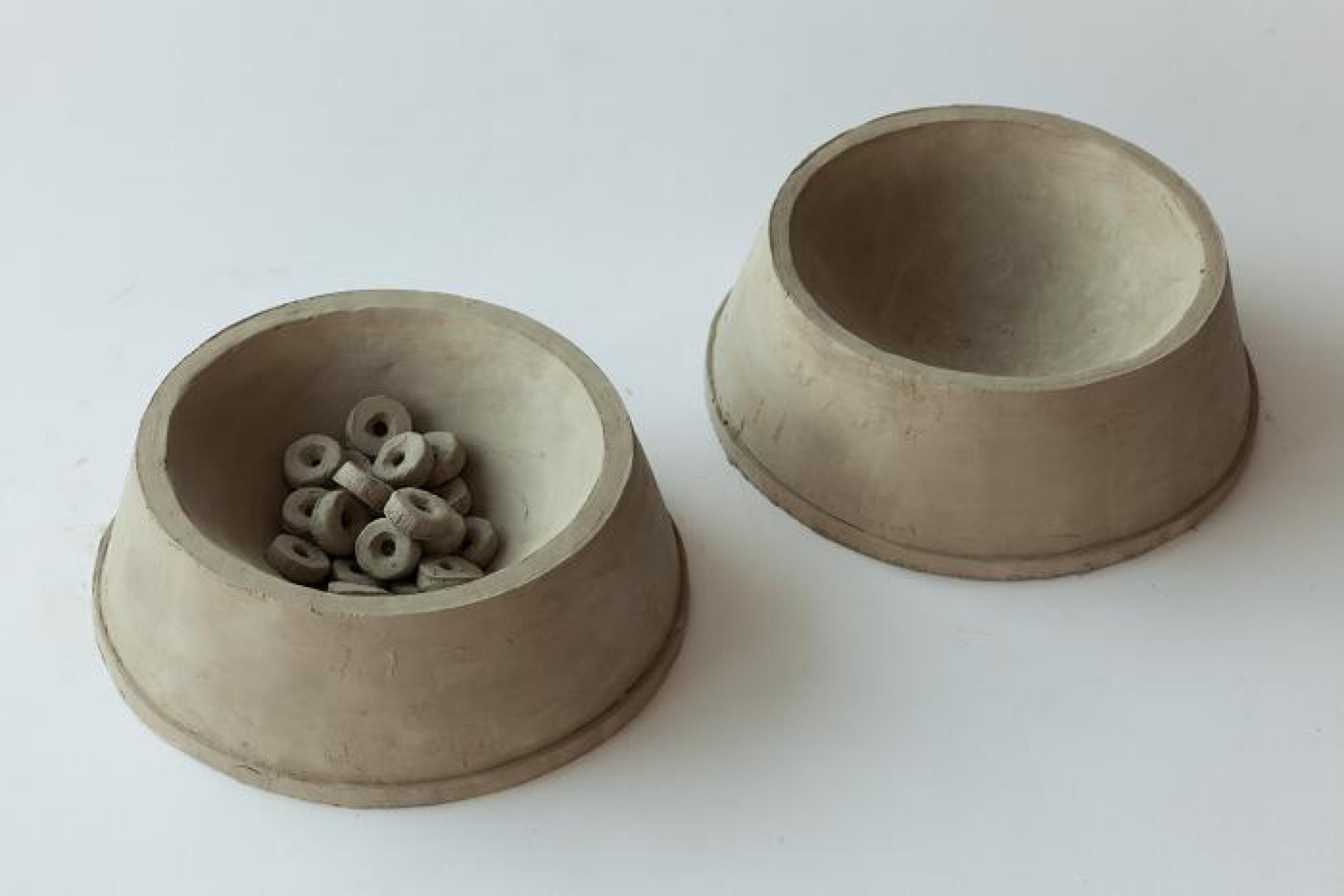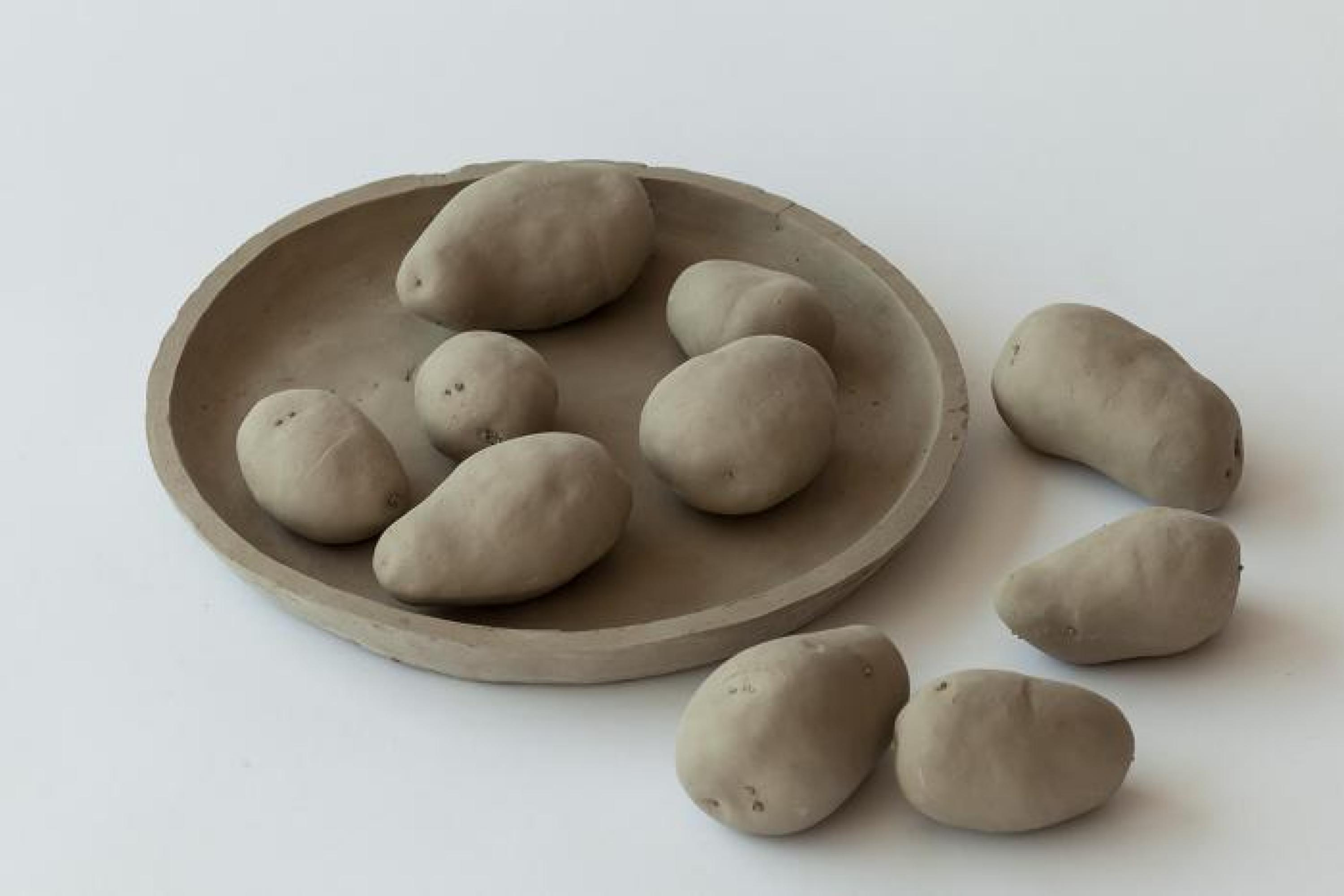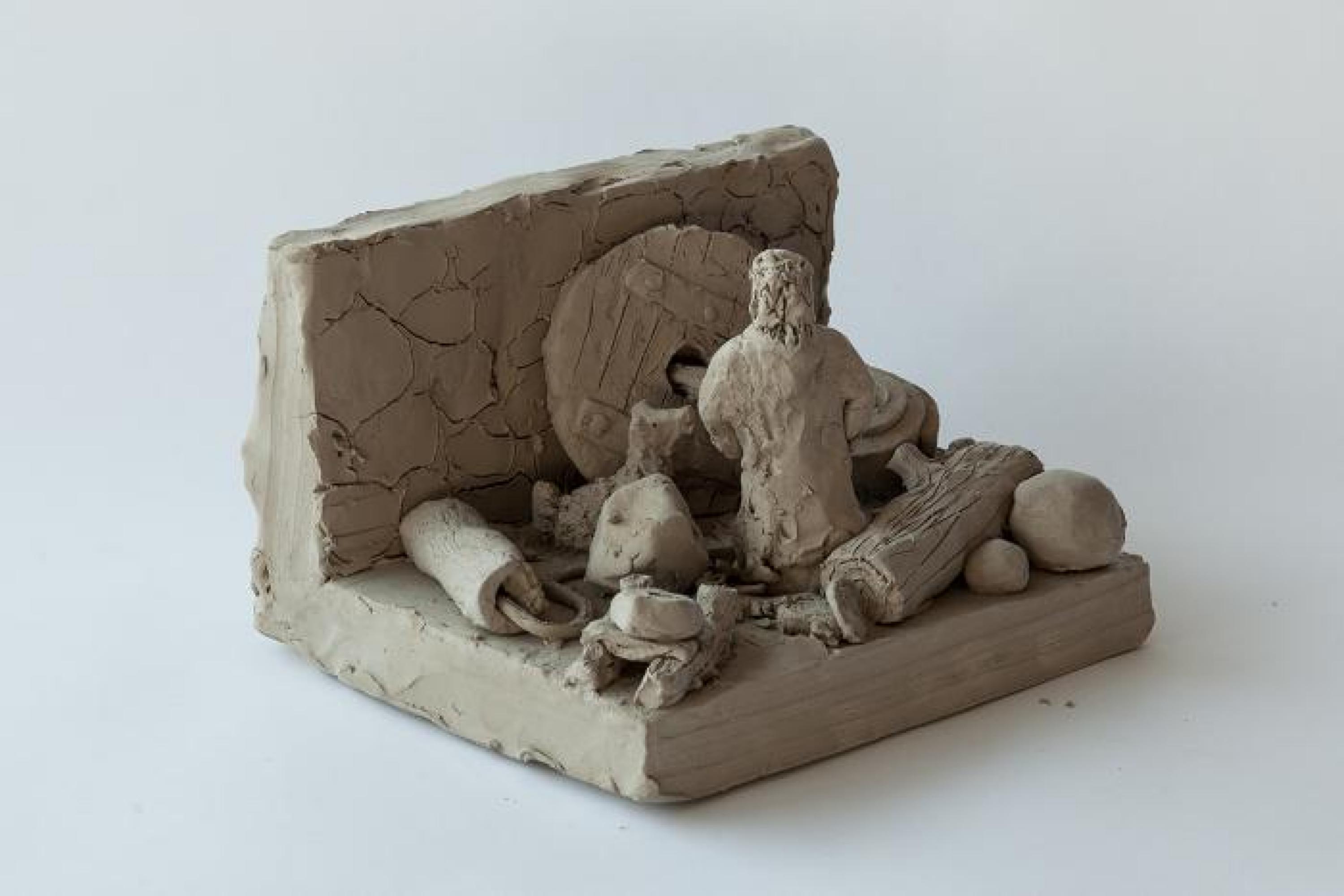unfired clay, 54 pieces of varying dimensions
