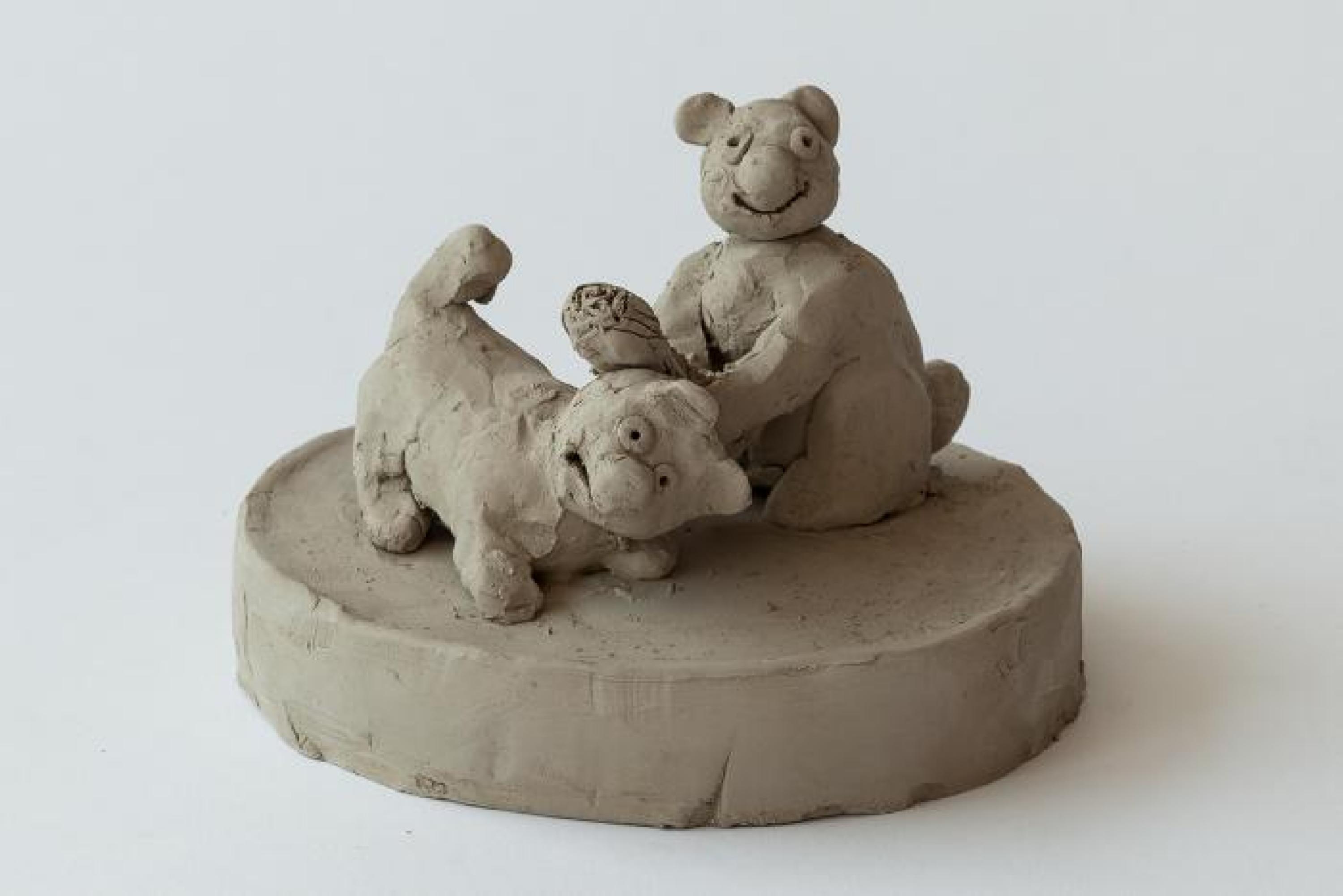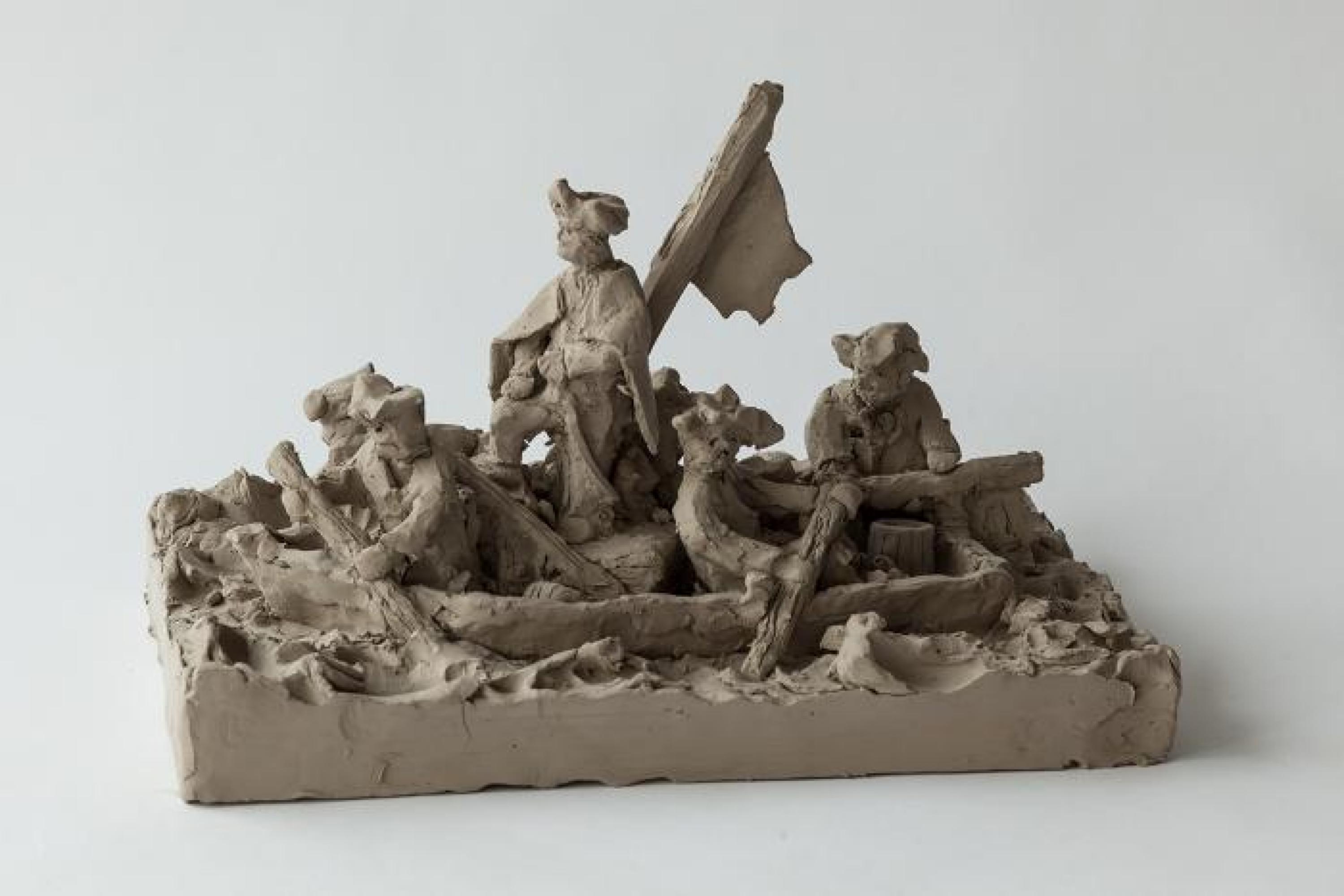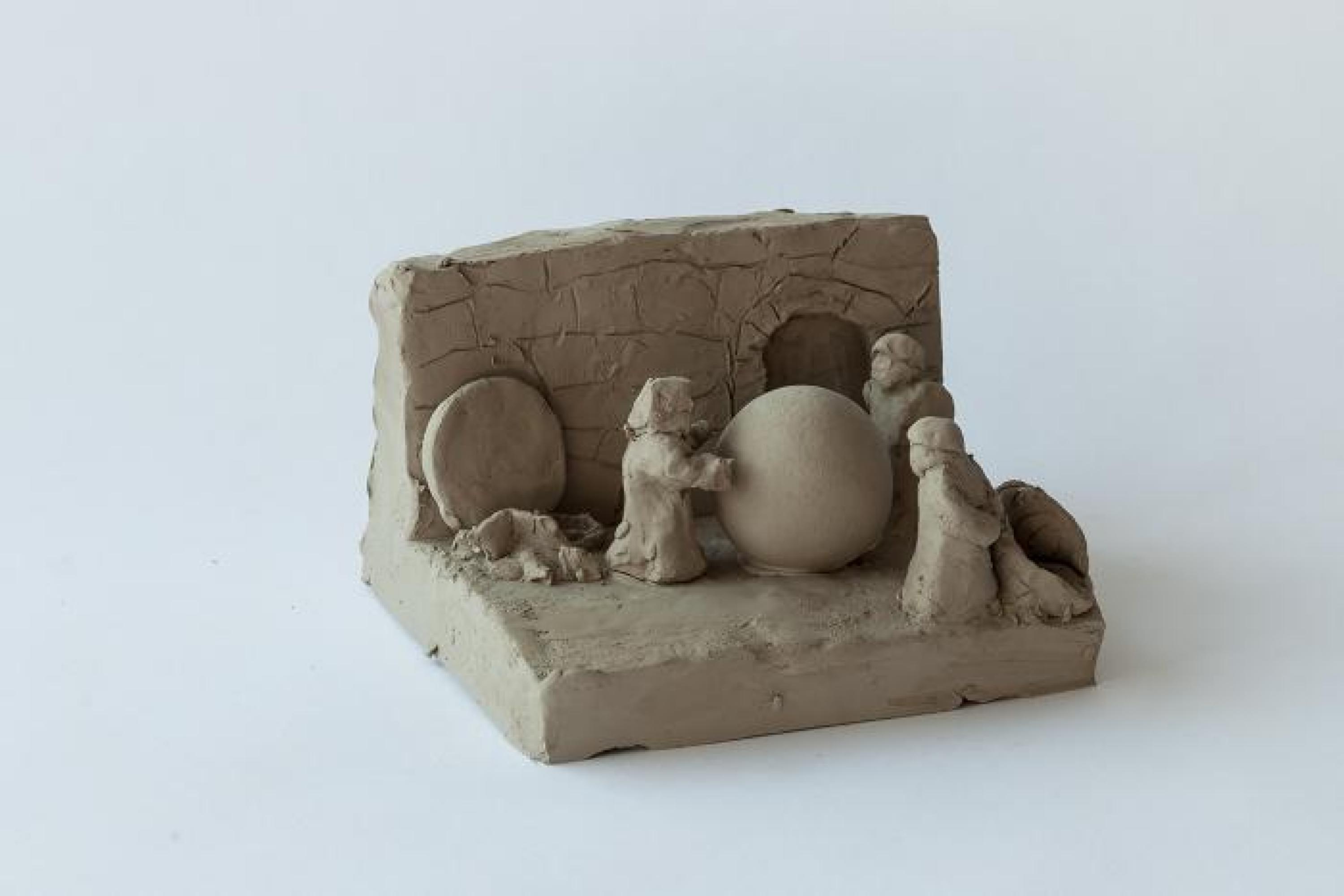 unfired clay, 54 pieces of varying dimensions