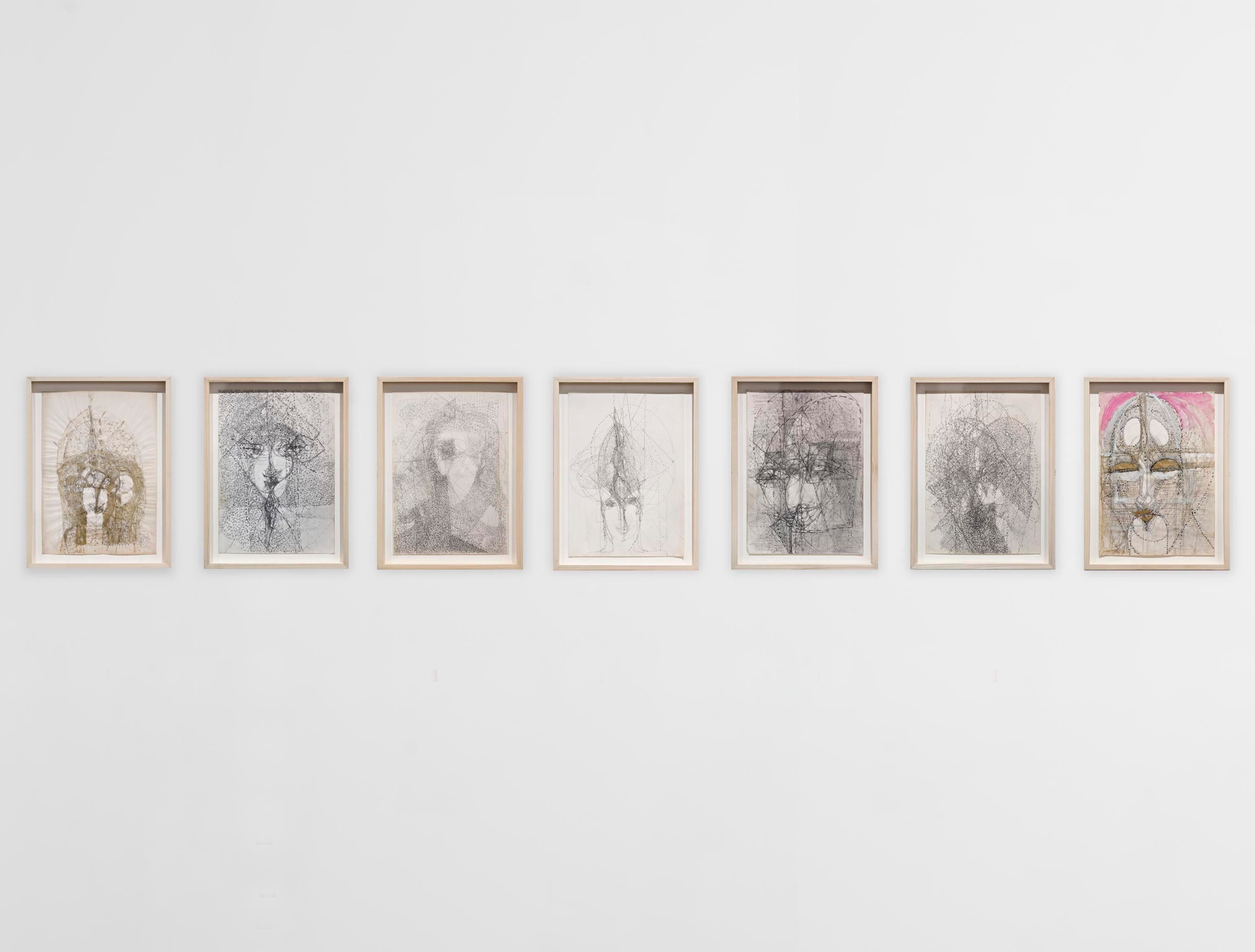 Part 1: graphite, metallic paint, watercolor, ink, tempera, and colored pencil on paper