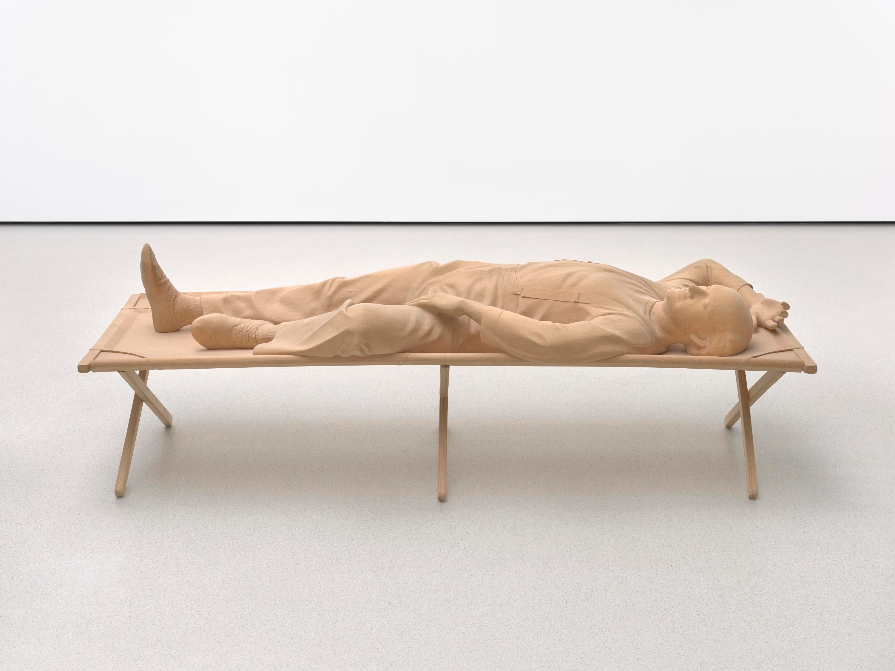 American artist Charles Ray’s (b. 1953) diverse and wide-ranging sculptural practice began in the mid-1970s. While difficult to classify, his work challenges perceptions of familiar materials, scale, and subject matter, at times conflating visual trickery with disquieting distortion. The second in a series of rotating exhibitions chronicling the artist’s career, the works installed in Room 8 were selected and installed in collaboration with the artist. On view together for the first time were Baled truck, 2014; 32 × 33 × 35 = 34 × 33 × 35, 1989; Chicken, 2007; Handheld bird, 2006; and Mime, 2015, from Glenstone’s collection, and Hand holding egg, 2007, on loan from the artist.