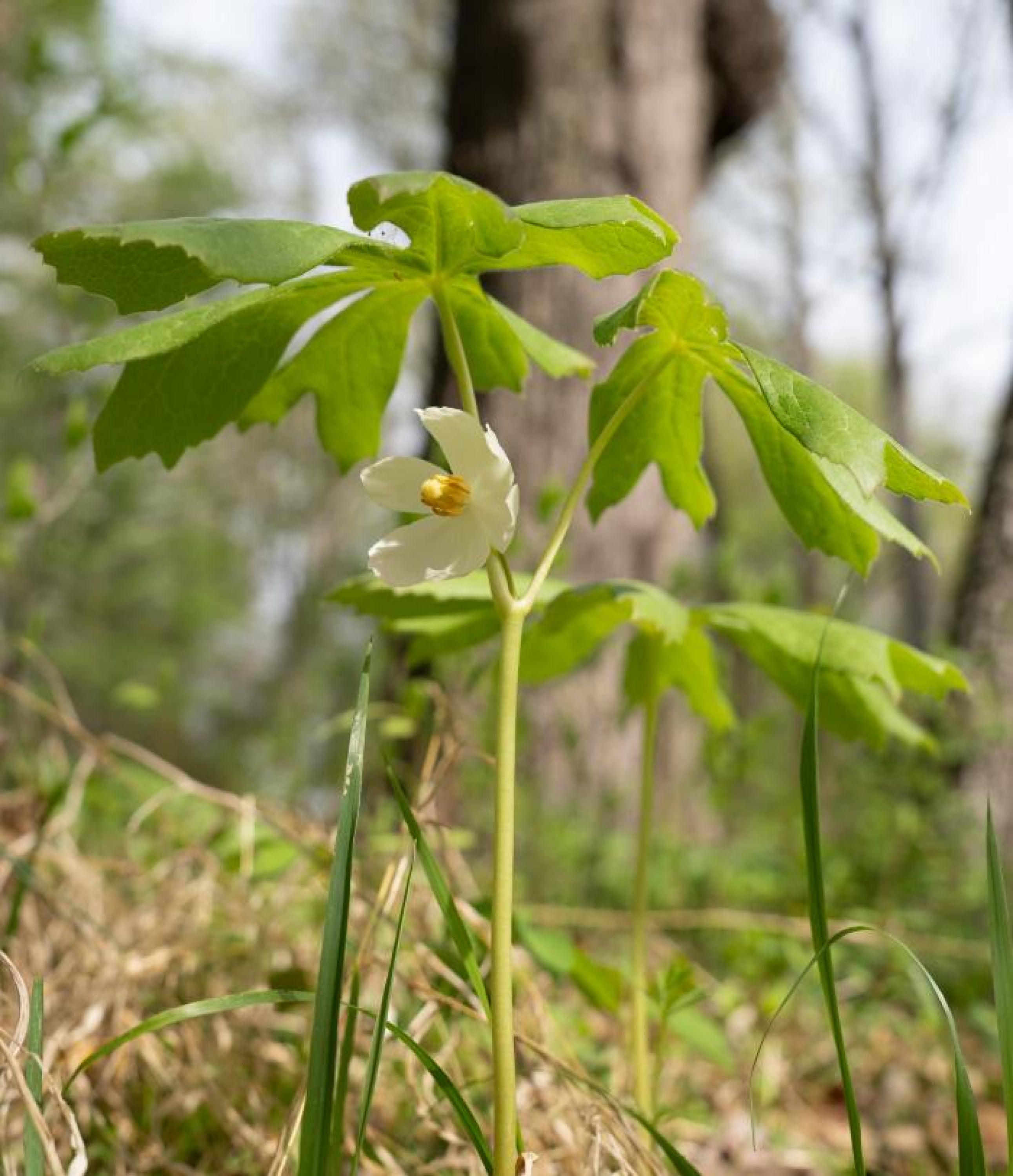 Woodland phlox (Phlox divaricata) is a native wildflower commonly seen in wooded areas with rich, well-draining soils, though it is sometimes present in fields or meadows. It can bloom in colors from white to blue to pink, but it most often blooms in purple hues. At Glenstone, it makes a wonderful springtime contrast to the masses of yellow blooms of golden groundsel outside of the Café. It grows 10-14 inches tall, and its flowers are tubular, meaning that only pollinators with long tongues like butterflies, moths, and skippers can reach its nectar. Woodland phlox tends to be deer resistant, and over time will form large stands and mats of plants which can create a cloud of light purple flowers in the springtime.